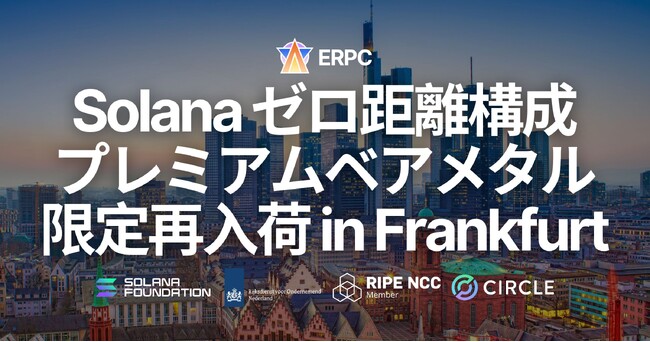 ELSOUL LABO B.V.(本社:オランダ・アムステルダム、代表取締役CEO:川崎文武)と Validators DAO が運営する ERPC は、フランクフルト(FRA)リージョンにおいて、Solana アプリケーション向けプレミアムベアメタルサーバーを数量限定で再入荷いたしました。