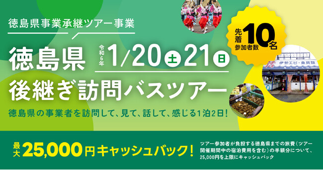 事業承継マッチングプラットフォーム「relay(リレイ)」を運営する株式会社ライトライト(宮崎県宮崎市 / 代表取締役:齋藤隆太)は、徳島商工会議所(徳島県徳島市 / 会頭:阿部和英)と提携し、徳島商工会議所、徳島県、徳島県事業承継・引継ぎ支援センター共催のもと徳島県事業承継ツアー事業「徳島県後継ぎ訪問バスツアー ~徳島県の事業所を訪問して、見て、話して、感じる1泊2日!~」を1月20日(土)、21日(日)に開催することをお知らせします。