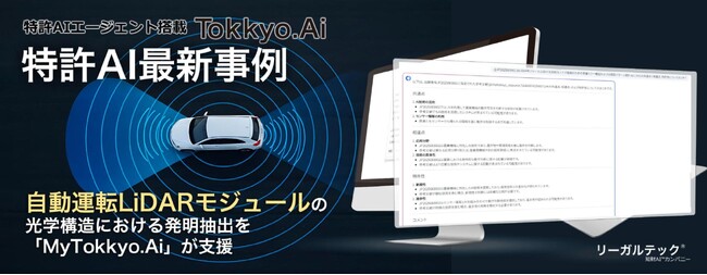 リーガルテック株式会社(本社:東京都港区、代表取締役社長:佐々木隆仁)は、自動運転車向けLiDARモジュールの光学設計に関する特許出願において、自社開発の特許支援AIプラットフォーム「MyTokkyo.Ai」が活用されたことを発表する。本事例では、ミラー構造の反射光ノイズ低減を目的とした多層膜設計に関する複数の試作データから、AIが特許化可能な要素を抽出し、出願ドラフトを自動生成した。