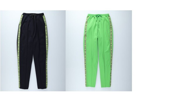 サイドにこぎん刺しをイメージした柄テープを使用。ジャージー素材で動きやすく、落ち感とつボリュームのあるシルエット作りでファッショナブルに。色で遊ぶもよし、ユニセックスで楽しんでもらいたいアイテム。