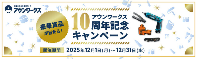 BuildAppで建設DXに取り組む野原グループ株式会社(本社:東京都新宿区、代表取締役社長:野原弘輔)のオンラインストアカンパニーが運営する建材通販サイト「アウンワークス」は、サービス開始10周年を迎えました。これに伴いユーザーの皆様に感謝の気持ちを込めて、本日2025年12月1日~2025年12月31日までの期間にてプレゼントキャンペーンを開催します。