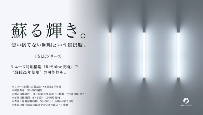 『「新しいあたりまえ」で、新しい世界を創るFORVAL』を理念に掲げ、ESG経営を可視化伴走型で支援する「企業ドクター(次世代経営コンサルタント)集団」の株式会社フォーバル(本社:東京都渋谷区、代表取締役社長:中島 將典、以下「フォーバル」)の連結子会社である株式会社アップルツリー(本社:東京都大田区、代表取締役社長:南谷 幸男、以下「アップルツリー」)は、直管LEDラインナップを一新し、12年間で磨き上げた技術を用いて開発されたフルモデルチェンジ製品『FSLEシリーズ』を2025年12月1日より販売開始いたします。