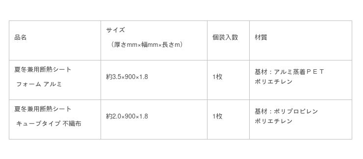 「夏冬兼用断熱シート キューブタイプ 不織布」の特長