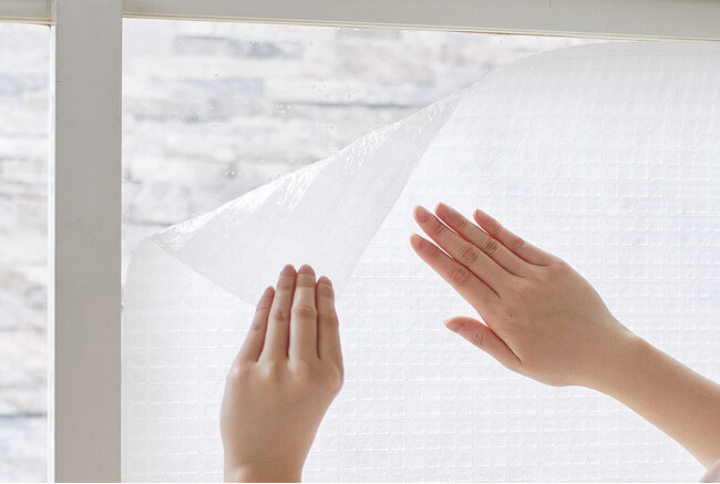 窓に水を吹きかけて貼るだけ。遮熱、断熱、紫外線カット、結露防止の4つの効果を発揮するシート