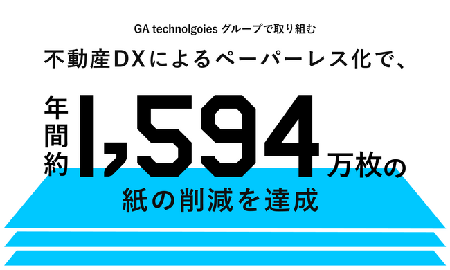 株式会社GA technologies [GAテクノロジーズ](本社:東京都港区、代表取締役 社長執行役員 CEO:樋口龍、証券コード:3491、以下「当社」)は、世界各地で地球環境問題を考える「アースデイ(地球の日)」(※1)に合わせ、当グループのサステナブルな取り組みの一つとして、2024年4月1日から2025年3月31日までの1年間で、当グループ全体で1,594万枚の紙の削減(※2)を達成したことをご報告します。