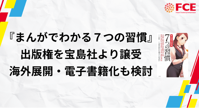 株式会社FCE(本社:東京都新宿区、代表取締役社長:石川淳悦、証券コード9564、以下FCE)は、株式会社宝島社(以下「宝島社」)が保有する『まんがでわかる7つの習慣』シリーズ全5巻の出版権(以下「当該出版権」)の譲受について、同社および著作権者との間で譲渡契約を締結いたしました。