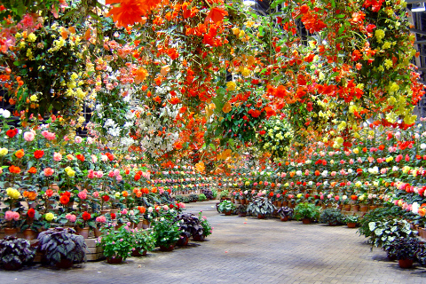 国内最大級のベゴニアガーデン。年中満開の大輪ベゴニアをはじめ、世界各国から集めた数百種・1万2千株の絢爛たる花々を常時栽培・展示しています。エントランスを抜けるとそこはベゴニアに囲まれた夢のような空間。約9,000平方メートル の大温室で約5,000鉢の球根ベゴニアが咲き誇る景色をお楽しみください。