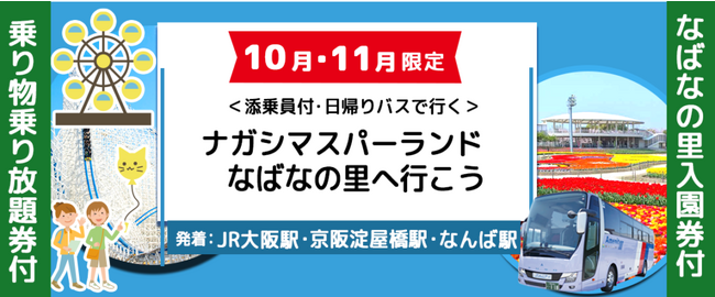 添乗員同行なので安心! 10月1日(日)・8日(日)・14日(土) 限定〈大阪・淀屋橋・難波発着〉 ナガシマスパーランド 1日乗り物乗り放題券付き 日帰りバスプラン