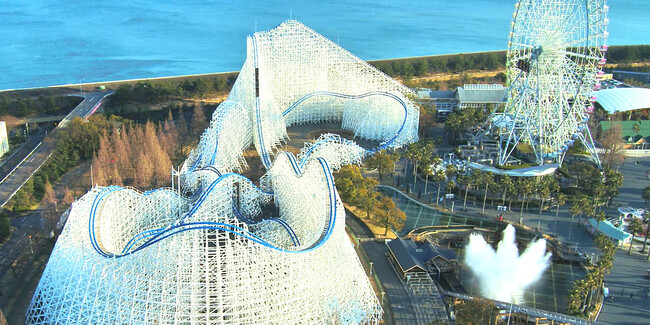 美しい真っ白な木製の柱に囲まれたコースの間を猛スピードで駆け抜ける想像を超えたゾクゾク&ハラハラのスリル満点の圧倒的マシン!木材だけでなく鋼材を使うことで、木製コースターでは実現することができなかった複雑でスリリングなコースレイアウトが可能に!360度のきりもみ回転するコークスクリューをはじめ、なんと最大傾斜角度80度から最高速度107km/hで急降下!車両が真横を向く90°バンクのレール形状など、今までのローラーコースターの常識を覆す世界最大級の迫力を日本で初めて体感できます!絶叫の聖地「ナガシマスパーランド」が、世界中の絶叫マシンファンの大注目になること間違いありません!!
