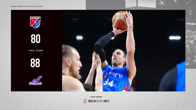 2025年10月12日(日)に開催した、りそなグループ B.LEAGUE 2025-26 シーズン【ライジングゼファーフクオカ vs.福島ファイヤーボンズ】戦は、“福岡 80-88 福島”で福岡の敗戦となりました。