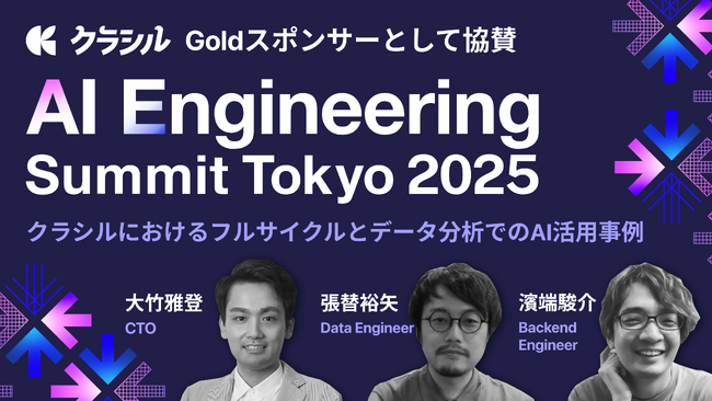 クラシル株式会社(本社:東京都港区、代表取締役社長:堀江裕介)は、2025年12月16日(火)に浜松コンベンションホールおよび Hybrid スタジオで開催される「AI Engineering Summit Tokyo 2025」に、Goldスポンサーとして協賛することをお知らせいたします。