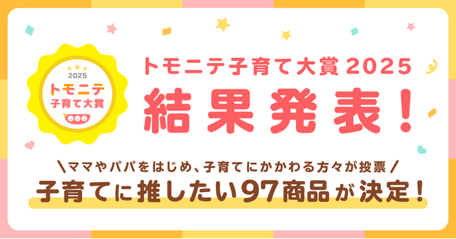 株式会社エブリー(本社所在地:東京都港区、代表取締役社長:吉田 大成)が運営する子育て動画メディア『トモニテ』は、子育てに関わる1,168名が、2025年に「使って良かった!」「これからも使い続けたい!」 と感じた商品を選ぶ「トモニテ子育て大賞」を開催。マタニティグッズ、授乳食事、おむつ、玩具、おでかけ、生活、ケアの7ジャンル(33部門)から、最優秀賞・優秀賞併せて97商品を選出いたしましたのでお知らせいたします。