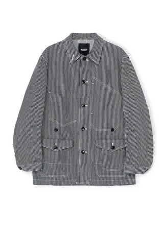 新たに登場するのは、ワークウェア素材として定番的なヒッコリーストライプデニム生地で仕立てたジャケットとパンツ。白とネイビーの爽やかな色とデニム生地の素材感でラフさを演出しながらも、ワークウェアとしての頑丈さや機能性を兼ね備えたアイテムです。