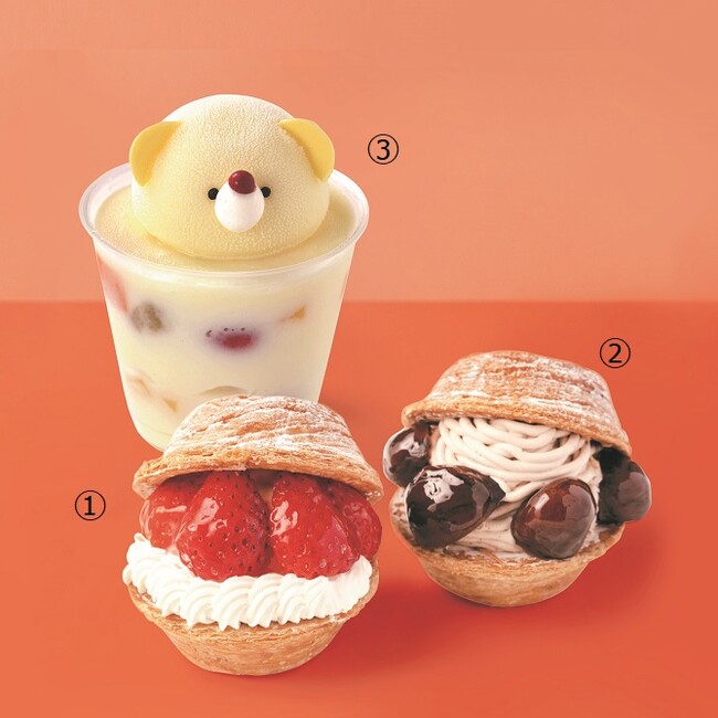1.いちごのキャペリーヌ(1個)627円 新商品 2.栗のキャペリーヌ(1個)627円 新商品