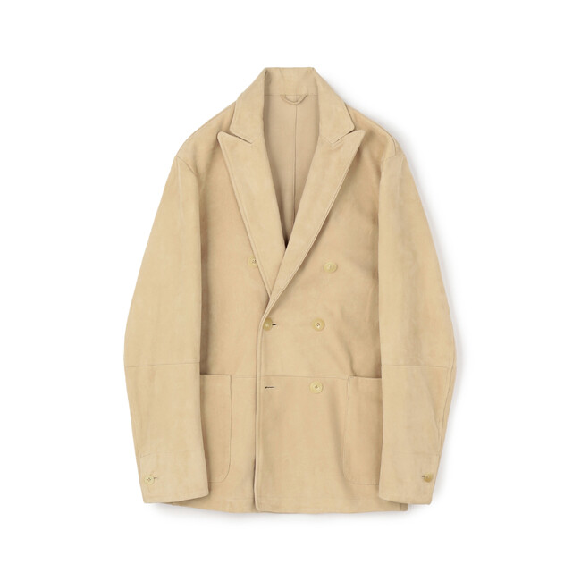 〈EMMETI〉社定番のダブルブレステッドジャケット『DARMAZIO』をベースに、細かな仕様やパターンを変更したエクスクルーシブモデル。