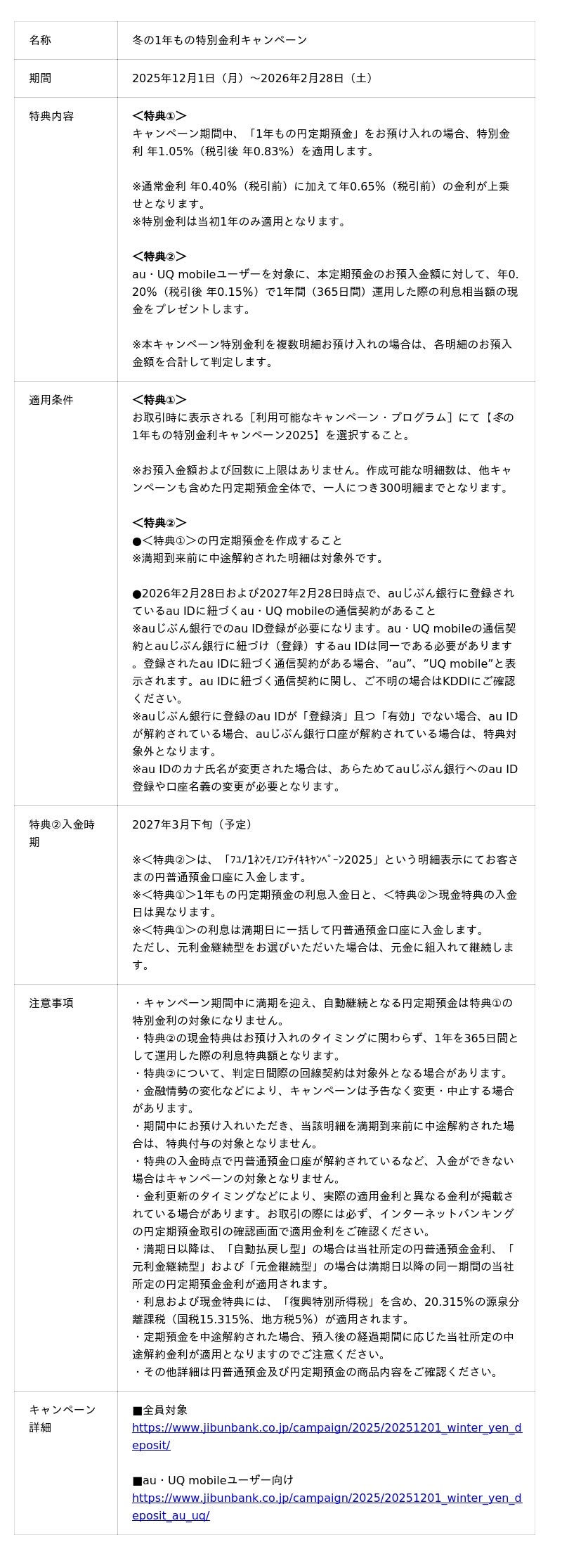 auじぶん銀行株式会社(本社:東京都中央区、代表取締役社長:田中 健二、以下 auじぶん銀行)は、2025年12月1日(月)から「冬の1年もの特別金利キャンペーン」(以下 本キャンペーン)を実施します。