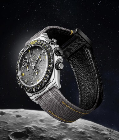 宇宙のエネルギーから着想した『CARBON ROLEX DAYTONA SPACE MISSION』。素材や配色によって月面を表現。長針には宇宙飛行士を配したユニークなデザインが特徴です。