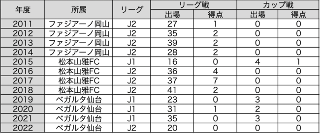J1リーグ 105試合(1得点)