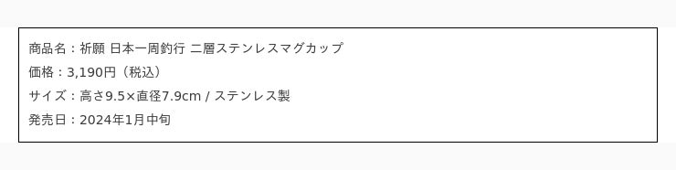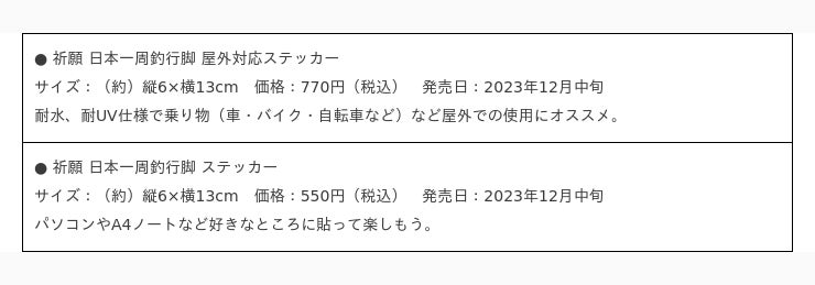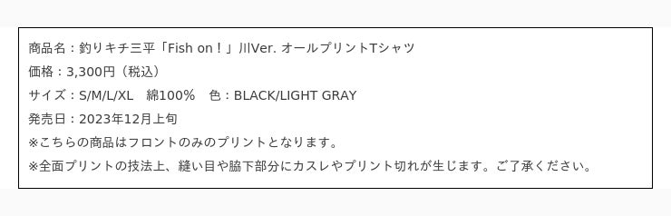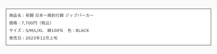 また、三平の兄貴分でもある「鮎川魚紳」の代名詞”祈願 日本一周釣行脚”を筆文字で力強くデザインしたパーカー、ステンレスマグカップ、ステッカーがラインナップ。