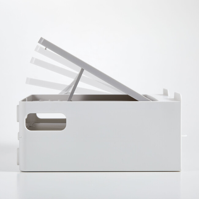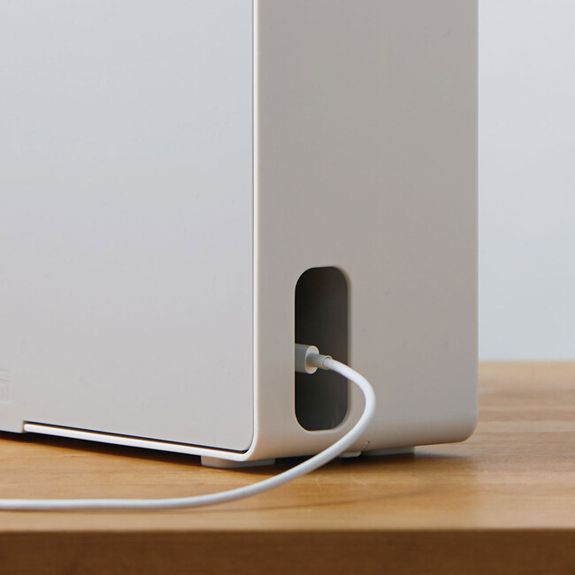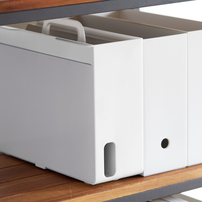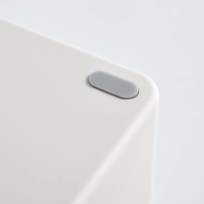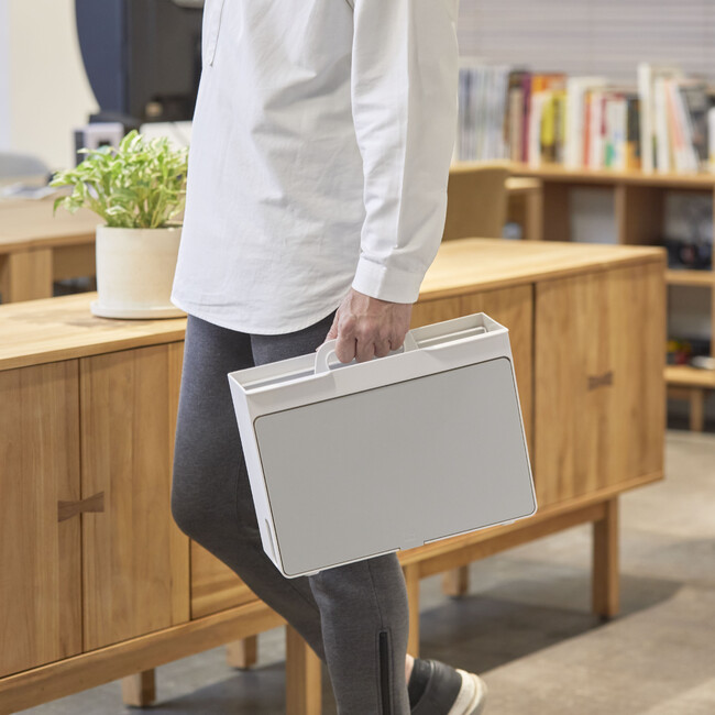 本体はA4ボックスファイルのサイズのため、棚やロッカーへ収納しやすい設計です。本体カラーはインテリアに馴染みやすいシンプルなシロを採用しています。