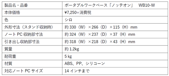製品名・品番:ポータブルワークベース「ノッテオン」WB10-W