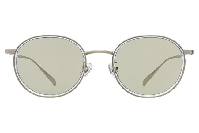 メタルとプラスチック素材の組み合わせで目元にアクセント。程よく目元の透けるカラーレンズで、カジュアルスタイルにも馴染むサングラスに。