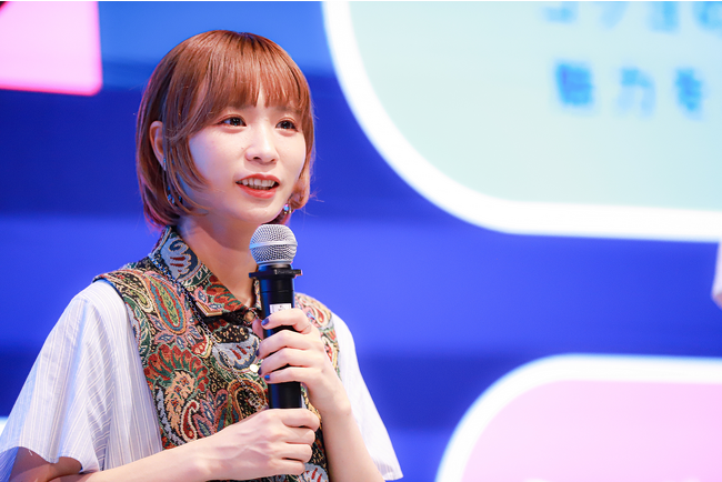 大爆笑のコントの後は、モモコグミカンパニーさん、橋田和明さんにもご登壇いただき、「ヨコク」をテーマにクロストークを実施。スクリーンに投影された社員の「ワタシのヨコク」にゲストは興味津々で、賀屋さんが気になった「「推し活」が仕事になるしくみをつくります!?」というヨコクに対して、「推しのエネルギーはすごいから、仕事になったら最強」というコメントや「コクヨの仕事と結び付いたら楽しそう」というアドバイスをいただきました。