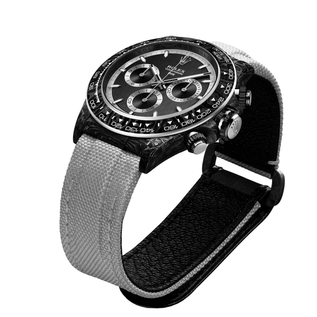 「CARBON ROLEX DAYTONA Nova(ノヴァ)」は、精密なカーボンファイバー構造とアートのような美しい造形を融合させたモデルです。素材の層やネジ一本、角度のひとつまで職人の手で仕上げられ、DiWのクラフトマンシップを体現しています。Novaは単なる時計にとどまらず、“時間”という概念を新たに感じさせる、唯一無二のタイムピースです。