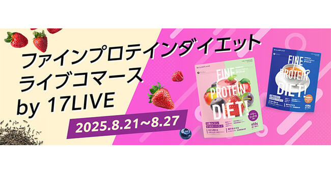 17LIVE株式会社(東京都渋谷区、代表取締役:ジャン・ホンフイ、URL:https://jp.17.live/)が運営する日本最大級のライブ配信アプリ「17LIVE(イチナナ)」は、38名のイチナナライバーとタッグを組み、株式会社ファイン(本社:大阪市淀川区、代表取締役:佐々木 信綱)が展開する「ファインプロテインダイエット」の初となるライブコマースイベントを、2025年8月21日(木)から8月27日(水)の期間で開催することが決定しましたので、お知らせいたします。