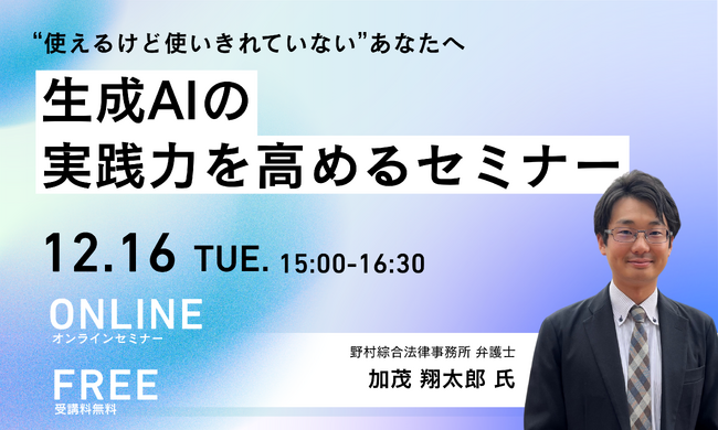 生成AIの導入を検討中の方、活用を軌道に乗せたい方にとって、実践的なヒントが得られる90分!