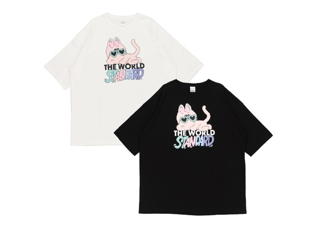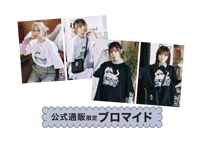 メンバーカラーを取り入れたネコをメインにBIGTシャツ、ショルダーバッグ、ソックス、うごく!ステッカー、アクリルスタンドキーホルダーの5種類の展開となる。