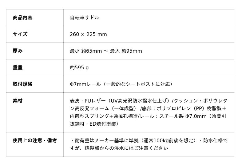 このサドルは、お尻の痛みや腰への負担を軽減するために設計された安定感と衝撃吸収に特化した