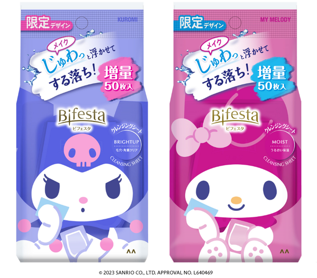 株式会社マンダム(本社:大阪市 社長執行役員:西村健)は、スキンケアブランド「ビフェスタ」から展開している「ミセラークレンジングシート」の「ブライトアップ」「モイスト」の枚数を増量し、株式会社サンリオのキャラクター“マイメロディ”と“クロミ”のオリジナルデザインにて、2023年10月23日(月)より新発売します。