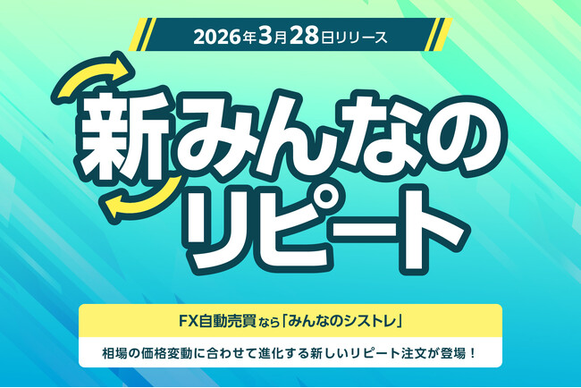 トレイダーズホールディングス株式会社(東京証券取引所スタンダード市場:8704)のグループ会社で、外国為替証拠金取引事業(FX取引)等を営むトレイダーズ証券株式会社(本社:東京都渋谷区、代表取締役:須山 剛、以下「トレイダーズ証券」)は、2026年3月28日(土)メンテナンス終了後より、店頭デリバティブ取引「みんなのシストレ」において、相場の価格変動を基準に新規注文および決済注文を自動で都度再設計する新たなリピート注文を提供開始いたします。