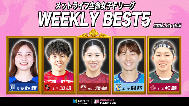 7月12日(土)~10月5日(日)に実施したメットライフ生命女子Fリーグ2025-26 第11節におけるベスト5をお知らせいたします。
