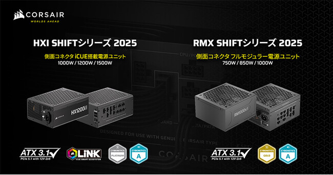 モジュラーコネクタを側面に配置した電源ユニット、CORSAIR社製「HXi Shift 2025」シリーズおよび「RMx Shift 2025」シリーズを発表