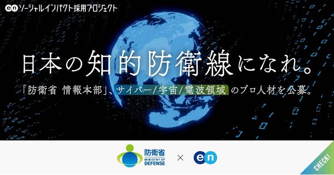 エン株式会社(本社:東京都新宿区、代表取締役会長兼社長:越智通勝)は、2025年11月25日(火)より、防衛省の『ソーシャルインパクト採用プロジェクト』(https://www.enjapan.com/)を開始しました。当社が運営する採用支援サービスを通じ、サイバー、宇宙、電波いずれかの領域に携わる「技術職」を公募します。下記本プロジェクト概要と防衛省のコメントを紹介します。