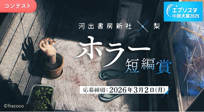 河出書房新社とエブリスタが共同で開催する、“新しいホラーの才能”を発掘するための小説コンテストの募集がスタート。作品募集期間は 2025年12月1日(月)~ 2026年3月2日(月)。