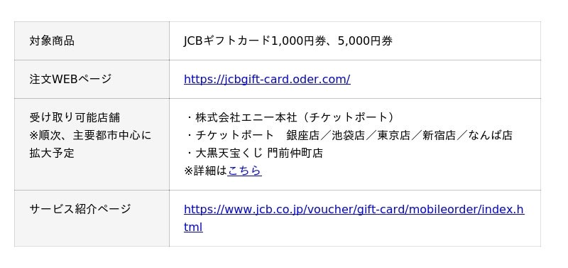 株式会社ジェーシービー (本社:東京都港区、代表取締役会長 兼 執行役員社長:二重 孝好、以下:JCB)は、JCBカード会員様向けに、JCBギフトカードをWEBページから事前に注文・決済し、店舗でスムーズに受け取ることができる「JCBギフトカード モバイルオーダー」を2025年11月10日より開始しました。