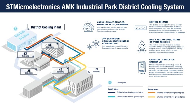 - SP GroupとDaikin Airconditioning社(シンガポール)による合弁企業が設計・建設・所有・運用する革新的な地域冷却システムにより、シンガポールにあるSTの大規模半導体製造拠点の環境性能が大幅に向上