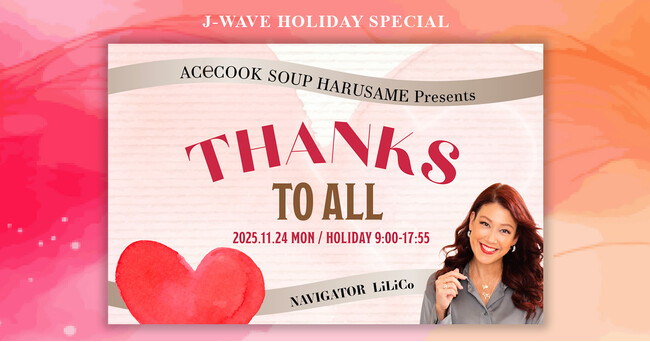 11月24日(月・振休)9:00~17:55『J-WAVE HOLIDAY SPECIAL ACeCOOK Soup Harusame presents THANKS TO ALL』