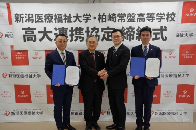NSGグループの新潟医療福祉大学(以下、本学)は、12月18日(木)、高校生に対して医療系資格・職業についての理解を深める機会を創出し、将来地域社会に貢献する人材を発掘・育成することを目的に、新潟県立柏崎常盤高等学校と高大連携協定を締結しました。