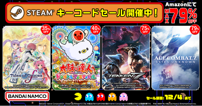 株式会社バンダイナムコエンターテインメントがAmazonにてSTEAMキーコードセールを開催したことをお知らせいたします。