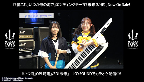 株式会社エクシングが展開する通信カラオケ「JOYSOUND」で、観て楽しめる多彩な映像コンテンツをお届けするサービス「みるハコ」に、『艦隊これくしょん -艦これ-』の公式ガールズバンド・C2機関“1MYB”の映像が登場!「佐世保の時雨」「渚を越えて」のミュージックビデオとメイキング映像を、2月28日(火)から5月7日(日)までの期間中、対象機種「JOYSOUND MAX GO」を導入のカラオケルームにて、無料(別途室料)でお楽しみいただけます。
