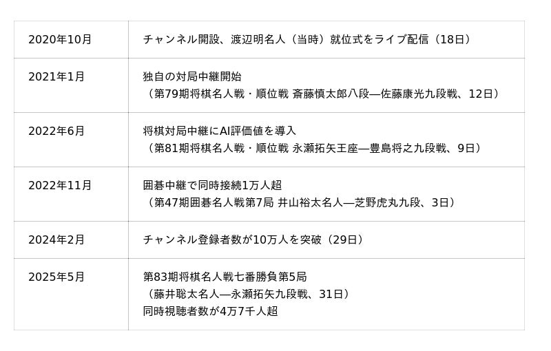 株式会社朝日新聞社(代表取締役社長CEO:角田克)が運営するYouTubeチャンネル「囲碁将棋TV-朝日新聞社-」は10月、開設5周年を迎えました。囲碁・将棋の対局や、記者会見のライブ、棋士のインタビューなどを配信。現場を知る新聞記者が手作りで立ち上げた「記者発のメディア」として、現場ならではの空気を視聴者と共有する姿勢が600万人とも言われる囲碁・将棋ファンに支持されています。いまでは再生回数1億3千万回、チャンネル登録者数も12万人を超える人気チャンネルです。