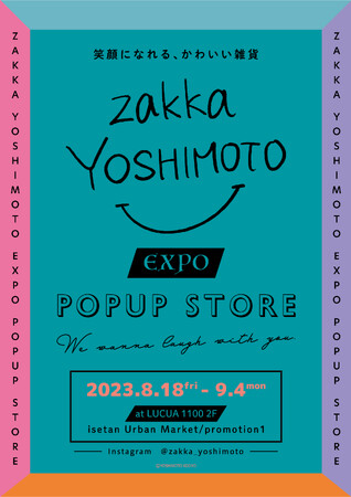 この度、2023年8月18日(金)から9月4日(月)まで大阪・梅田にある、LUCUA1100 2階イセタン アーバンマーケットにて、新発売のよしもと芸人グッズが集まる『zakkaYOSHIMOTO expo POPUP STORE』の開催が決定しました。
