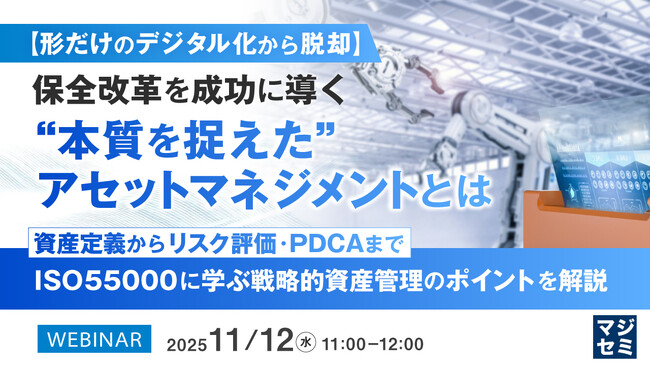 マジセミ株式会社は「【形だけのデジタル化から脱却】保全改革を成功に導く“本質を捉えた”アセットマネジメントとは」というテーマのウェビナーを開催します。