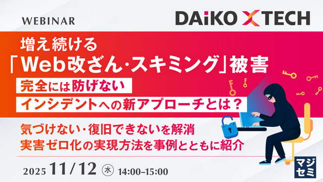 マジセミ株式会社は「増え続ける「Web改ざん・スキミング」被害 完全には防げないインシデントへの新アプローチとは?」というテーマのウェビナーを開催します。