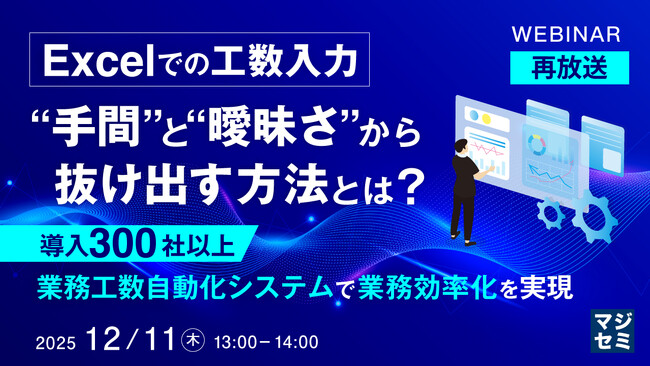マジセミ株式会社は「【再放送】Excelでの工数入力、“手間”と“曖昧さ”から抜け出す方法とは?」というテーマのウェビナーを開催します。