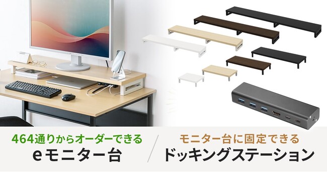 サンワサプライ株式会社(本社:岡山市北区田町1-10-1、代表取締役社長 山田和範)は、豊富なサイズ・仕様から選べる人気のeデスク・ラックシリーズに新たに机上で使える「eモニター台」を追加発売しました。